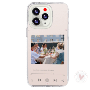 En La Botigueta de Marieta creamos fundas únicas con estilo Spotify, donde podés personalizar con la portada de una canción, un código escaneable, nombres, fechas o una foto especial.